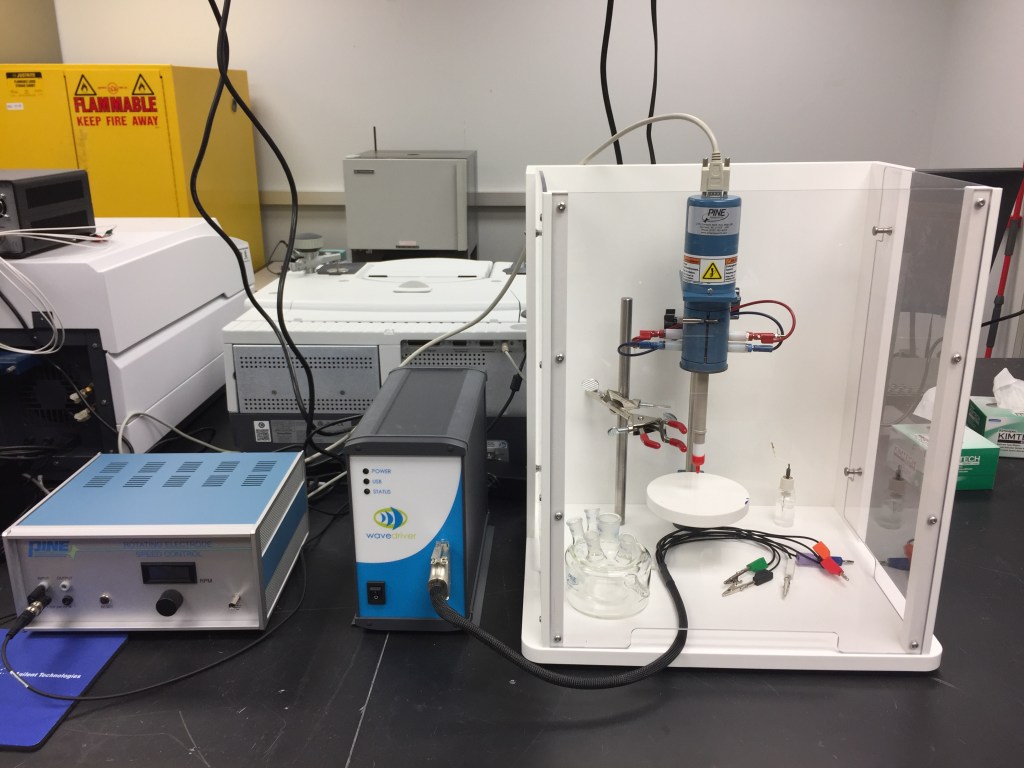 Cary 5000 – UV-Vis-NIR spectrophotometer Cary 8454 – photodiode arrary UV-Vis VeeMax III accessory for spectroelectrochemical FTIR ThermoScientific iS-50 FTIR Pine WaveDriver 20 with RRDE CHI 660E ThermoScientific Lindberg Blue Box Furnaces ThermoScientific Lindberg Blue Tube Furnace Integrating Sphere Like Loading...